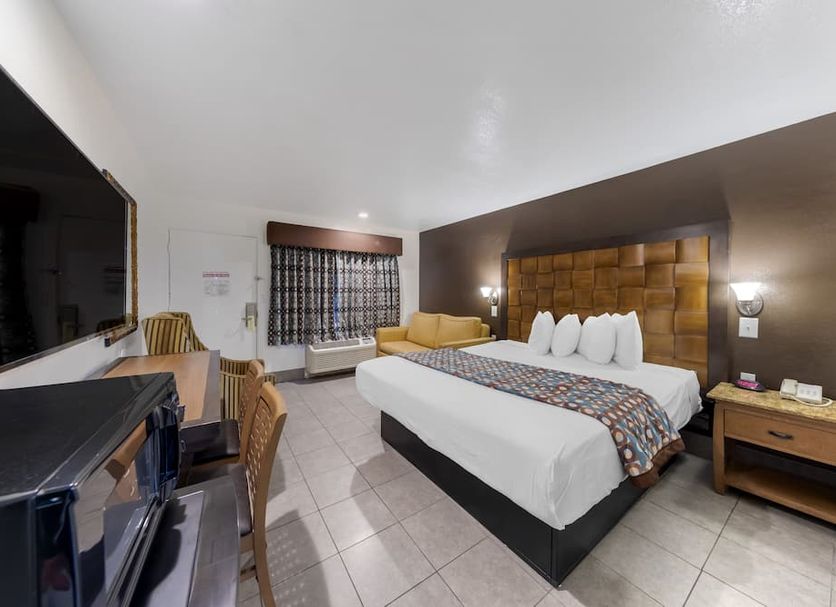 The motel's rooms are comfortable and provide a kitchenette that is equipped with a refrigerator and a microwave. They also boast a range of entertainment amenities, such as movies-on-demand.