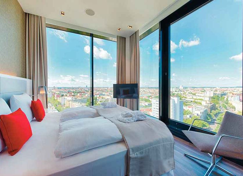 Hotel Riu Plaza Berlin is a 4-star property that is located in Berlin, Germany. There are plenty of amenities to enjoy including fitness facilities, a business center, and laundry facilities. The front desk is staffed 24/7, and they can offer concierge services to help book tours or obtain tickets. The staff members are multilingual and can offer assistance in Arabic, English, French, German, Italian, and Spanish. There is one restaurant on site, and it offers a breakfast buffet each morning. Guests will also find that there is a bar area for sipping a glass of wine or a pint of beer. The room service menu is available 24 hours per day.