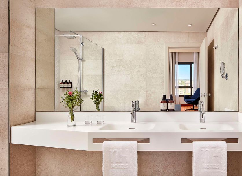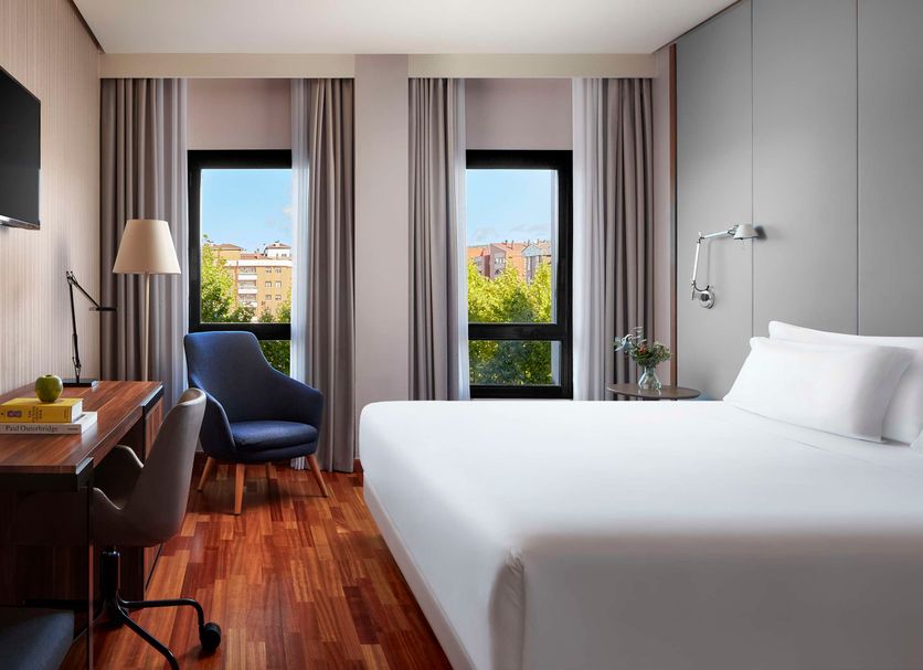 The NH Ciudad de Cuenca hotel is set within a quiet residential area of San Fernando, just opposite a lovely green park. Within 15 minutes on foot you can reach the commercial center and the old part of the city, which is designated as a UNESCO World Heritage Site. Walk a little further and you will reach the Auditorio de Cuenca conference center and the old town’s Puente de San Pablo. The Fernando Zóbel train station is 8km away. NH Ciudad de Cuenca has 74 modern rooms finished with warm and comfortable décor. You may choose to stay in one of our connecting rooms which are perfect for families and large groups. Accessible rooms are also available. A delicious breakfast is served every morning and includes a large spread of fresh foods and beverages. The hotel restaurant is a cozy space filled with natural light where you can order one of our Mediterranean dishes made with fresh seasonal products. There is also a relaxing bar if you prefer to unwind with a drink. For a workout, head to our gym. If you are in Cuenca for business, we have six meeting rooms that can accommodate up to 400 people.