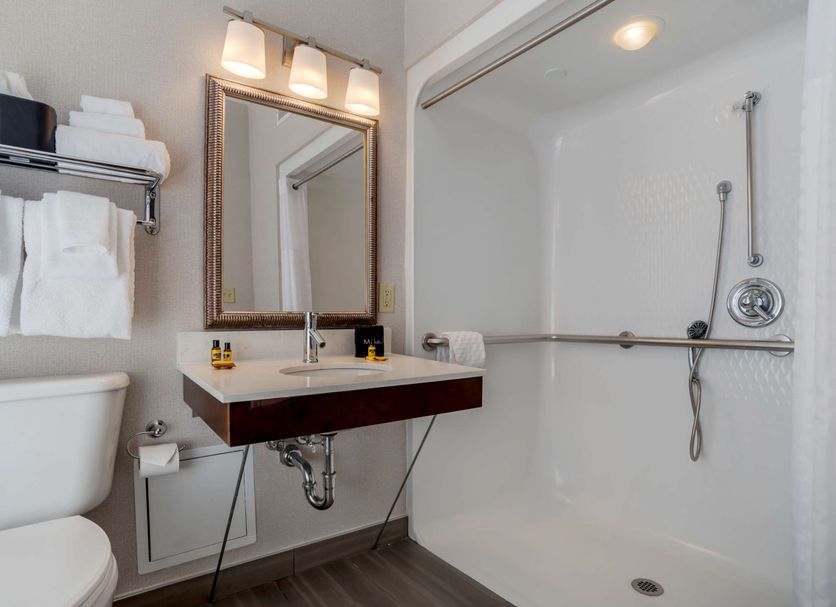 The guest services available in the lobby include sightseeing recommendations, assistance with reservations and tickets, tour planning, and more. The hotel also provides free deluxe continental breakfast, complimentary WiFi throughout the building, upgraded suites with whirlpool tubs, 24-hour front desk services, and accessible services and rooms that are ADA compliant. The non-smoking hotel offers valet parking for an additional fee. There is an on site business center for business travelers. Guests can access off-site fitness facilities for a discounted rate of $10 per day with their stay.