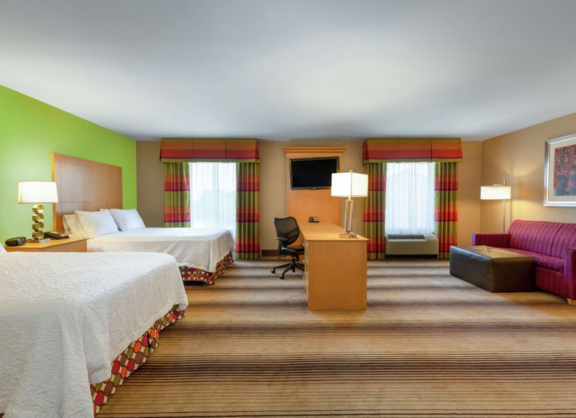 Located on I-30, just off the Jefferson Exit, the friendly Hampton Inn Texarkana Arkansas hotel is just a short walk from the Arkansas Convention Center and the Holiday Springs Water Park. Enjoy easy access to shops, restaurants and leisure options and numerous business parks and medical centers. Texarkana Regional Airport is just three miles from our warm and welcoming hotel in Texarkana, AR. Soak up the atmosphere of the Four States Fair and Rodeo, catch a baseball game at Ed Worrell Park and take the kids for a fun day out at Holiday Springs Water Park. Relax in a spacious guest room or suite at this Texarkana hotel with a variety of amenities, including a microwave and a mini-refrigerator. Check emails with free WiFi, watch movies on the flat-screen TV and enjoy a great nights' sleep on the clean and fresh Hampton bed. Each morning, join us for Hampton's hot breakfast buffet, which features our signature hot waffle station. Buy snacks in our 24-hour Suite Shop and enjoy free tea and coffee and advice on what to see and do in Texarkana, AR, 24-hours a day in the lobby. Hold a meeting or small wedding in our naturally-lit conference room and stay connected with the free business center. Cool down in the shimmering outdoor pool or exercise in the free fitness center. Friendly service, clean rooms, comfortable surroundings, every time. If you're not satisfied, we don't expect you to pay. That's our commitment and your guarantee. That's 100% Hampton.