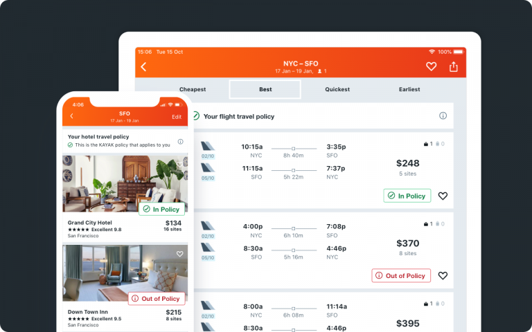 Cut travel costs by adding your travel policies to KAYAK search.